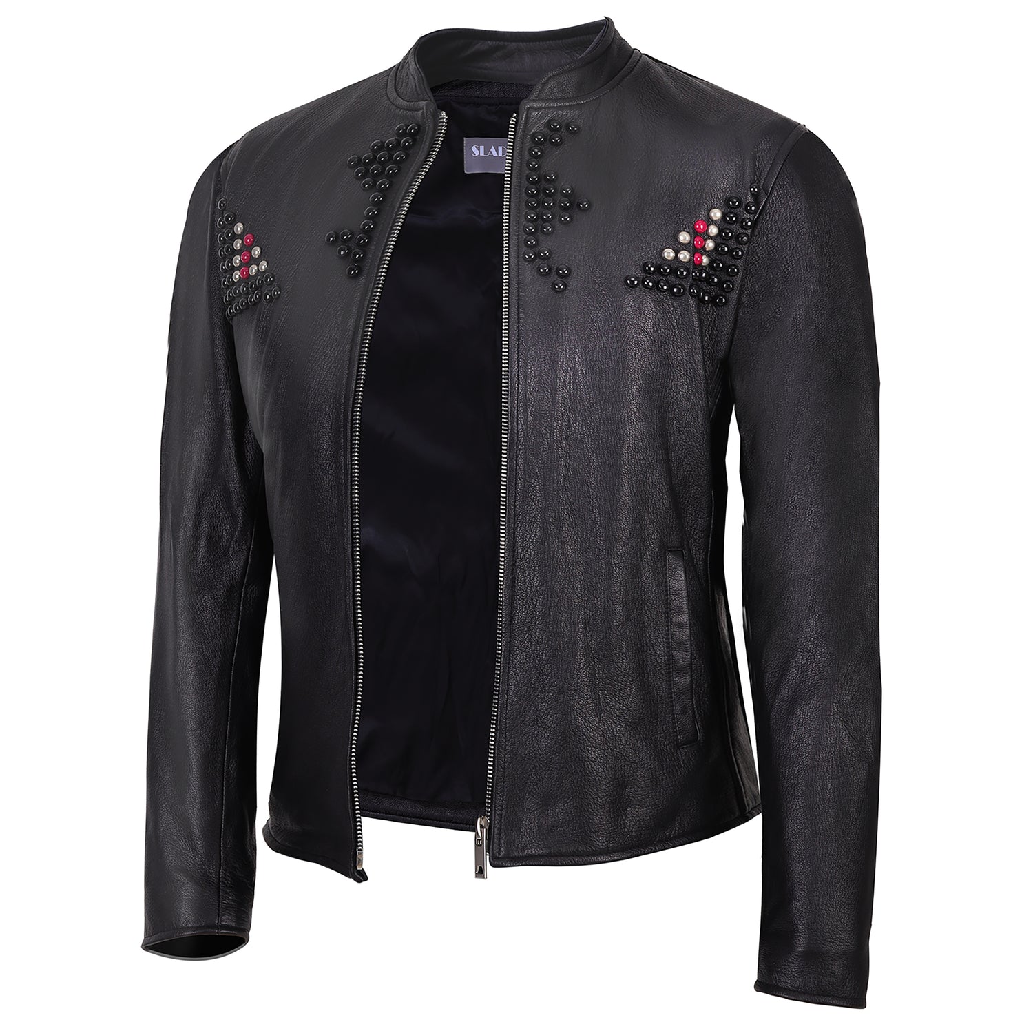 Johanne Light Weight Dark Blue and White Strings Real Lamb Skin Clubwear Leather Jacket