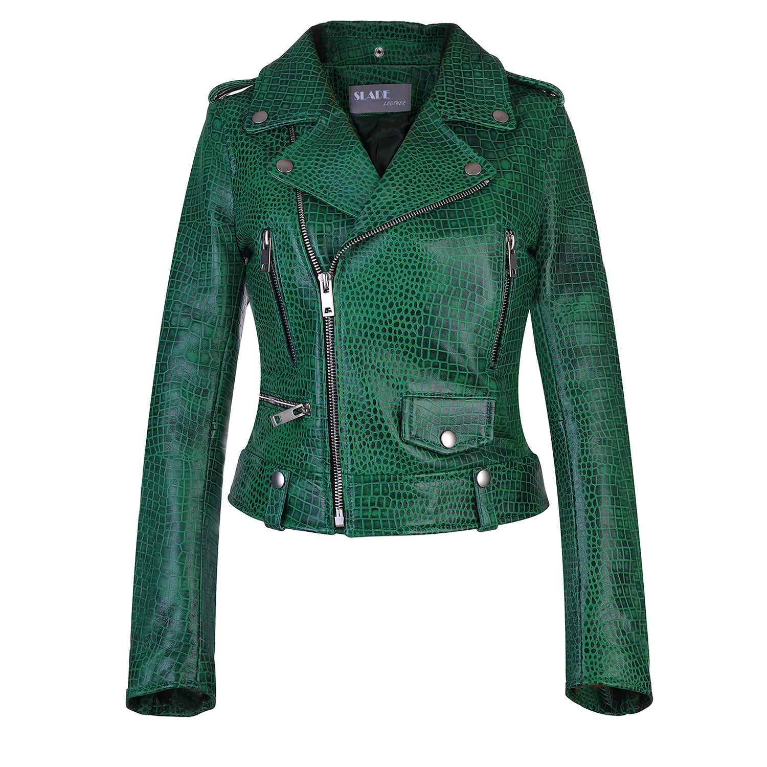 Ivy Womens' Green Alligator Style Naked Cowhide Leather Jacket