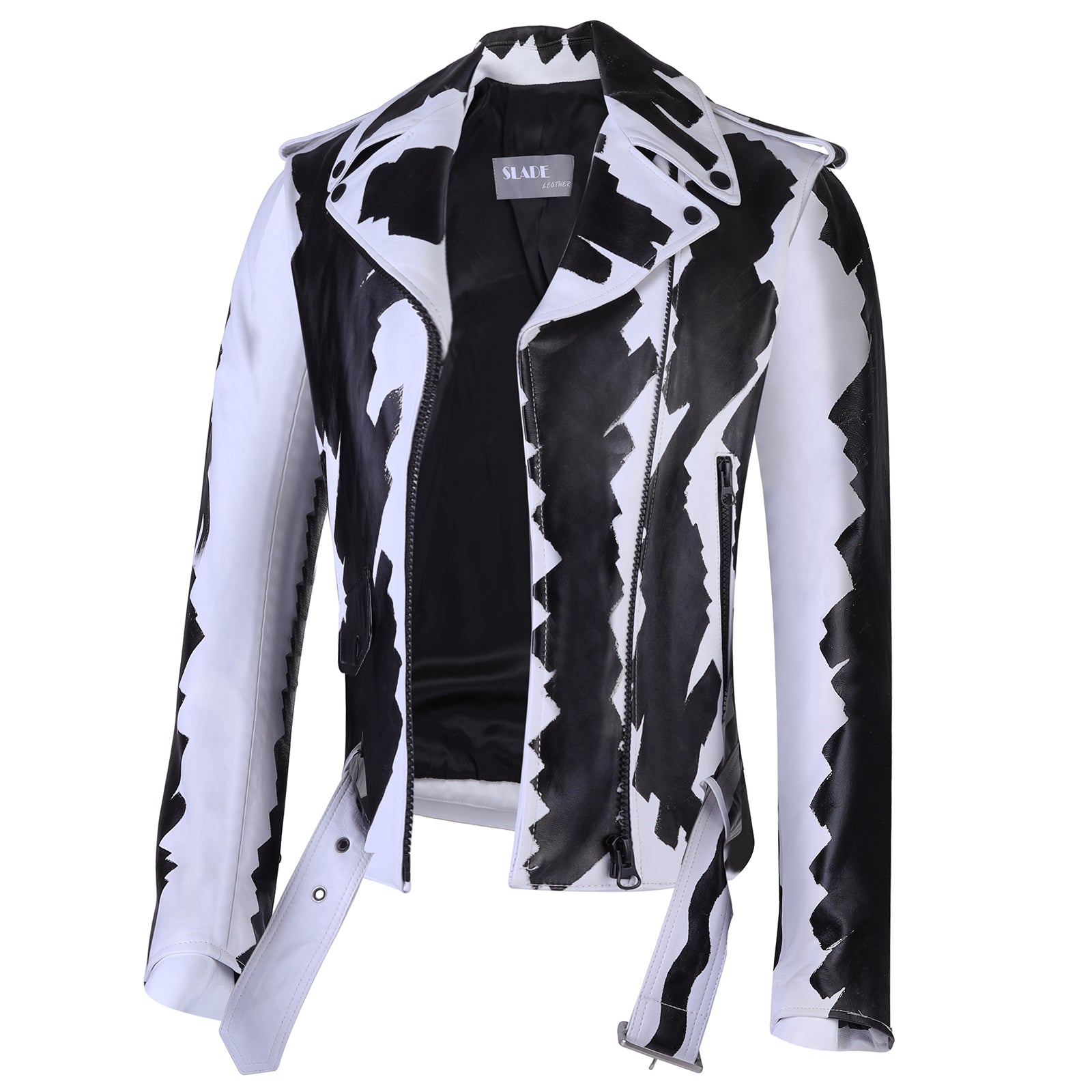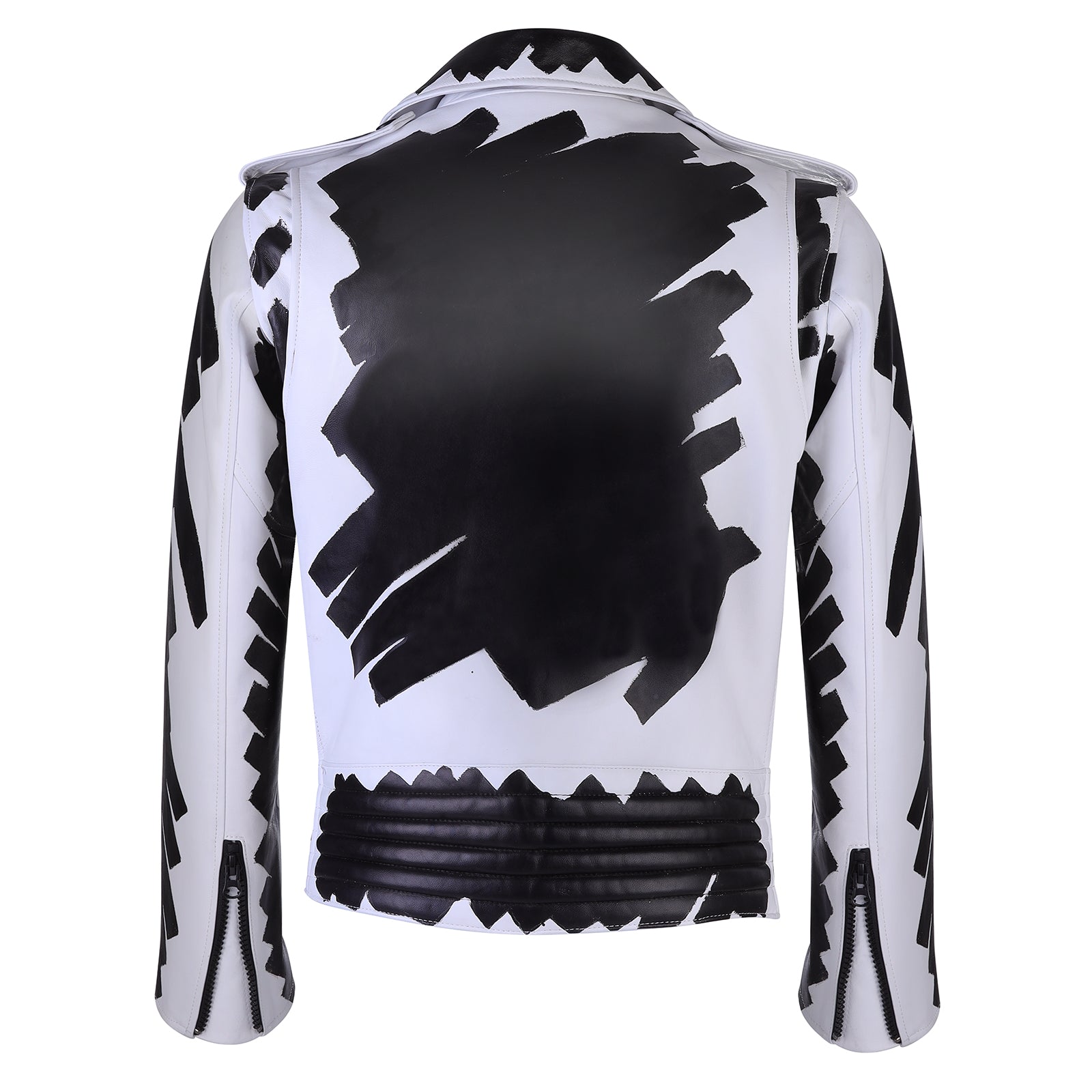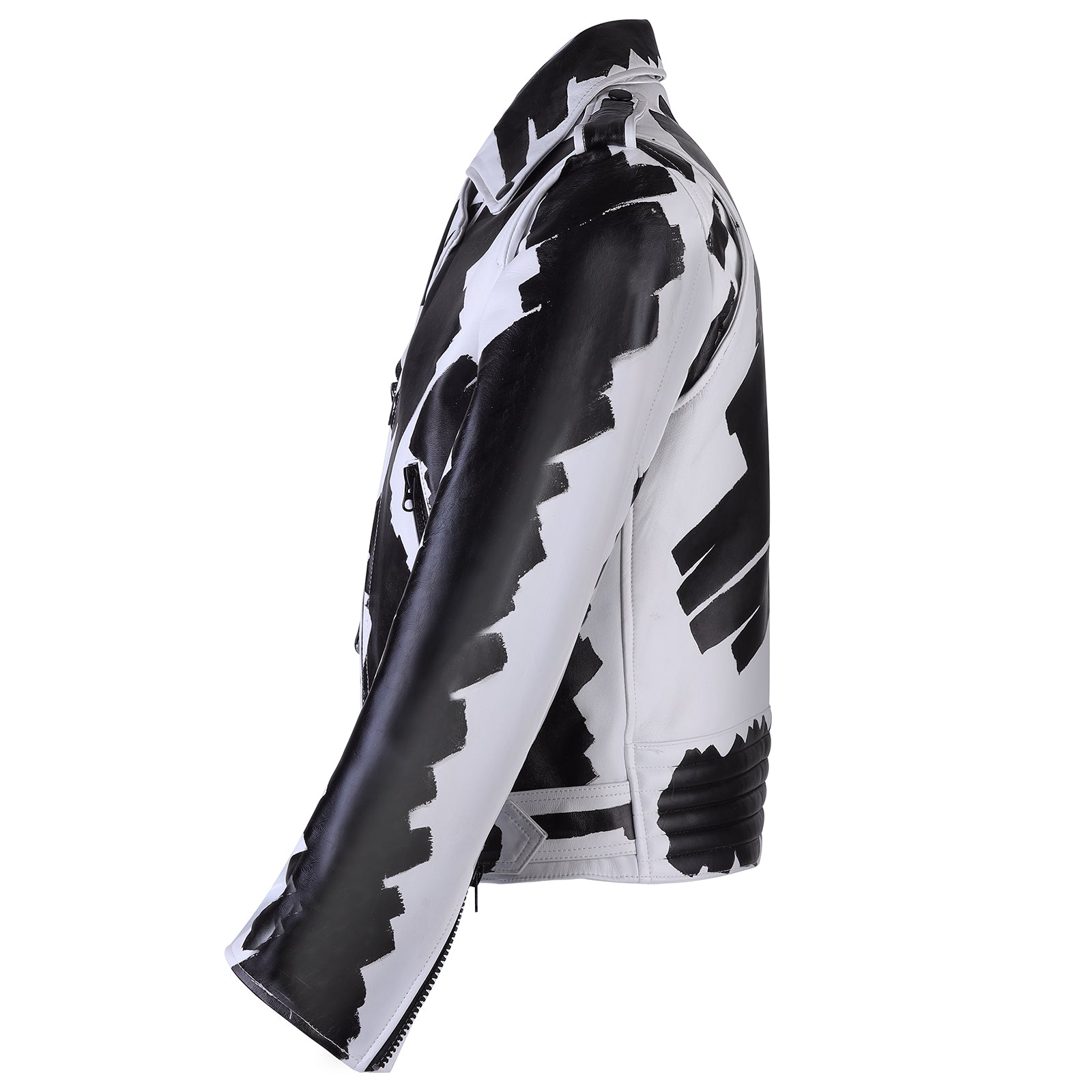 - CUSTOMER NAME HERE -Akmar Men's Black and White Classic Soft Lamb Skin Leather Jacket With Belt