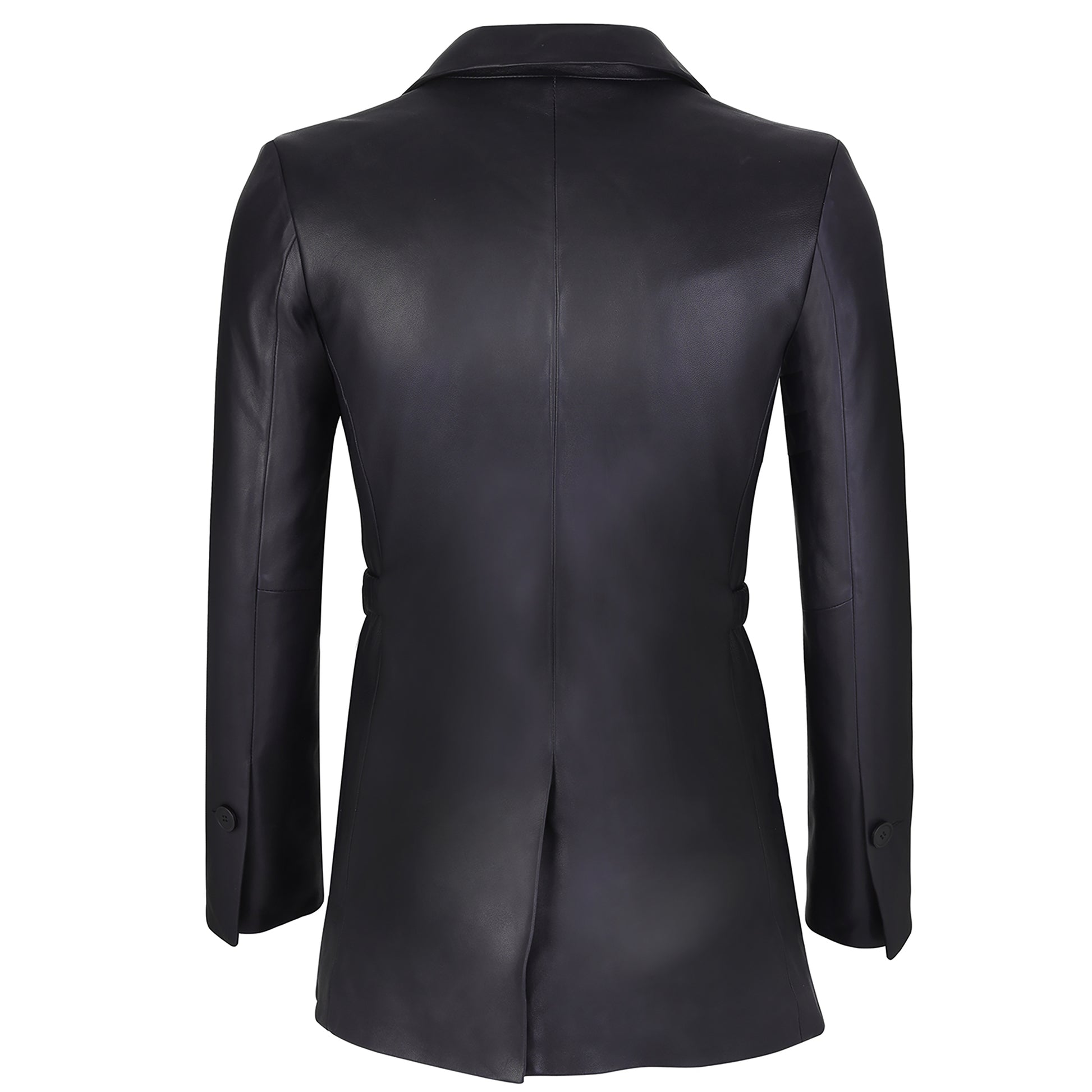 - CUSTOMER NAME HERE -Anna Women Black Naked lamb skin leather Long Coat