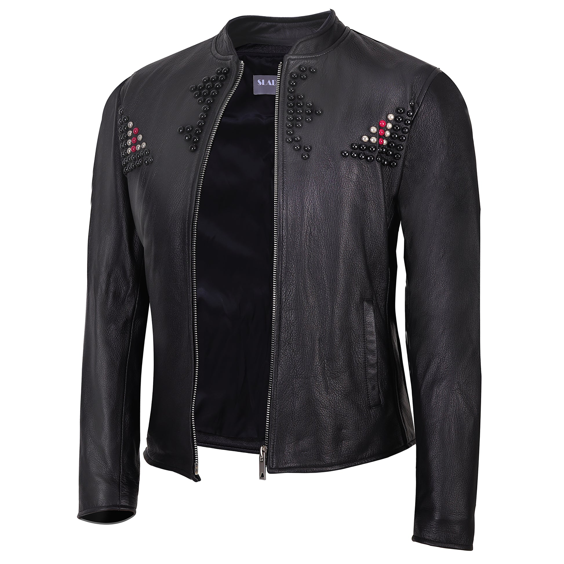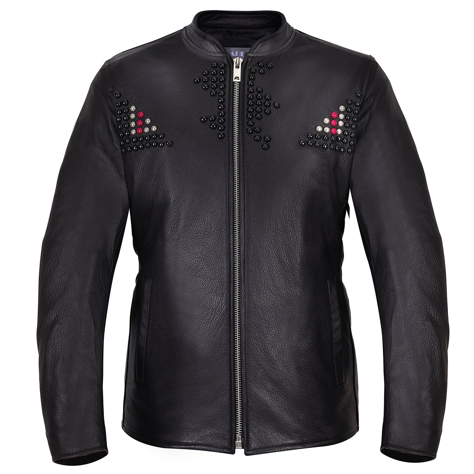 Piers Men's Black Naked Cowhide Leather Jacket With Beads, Stylish Club Wear